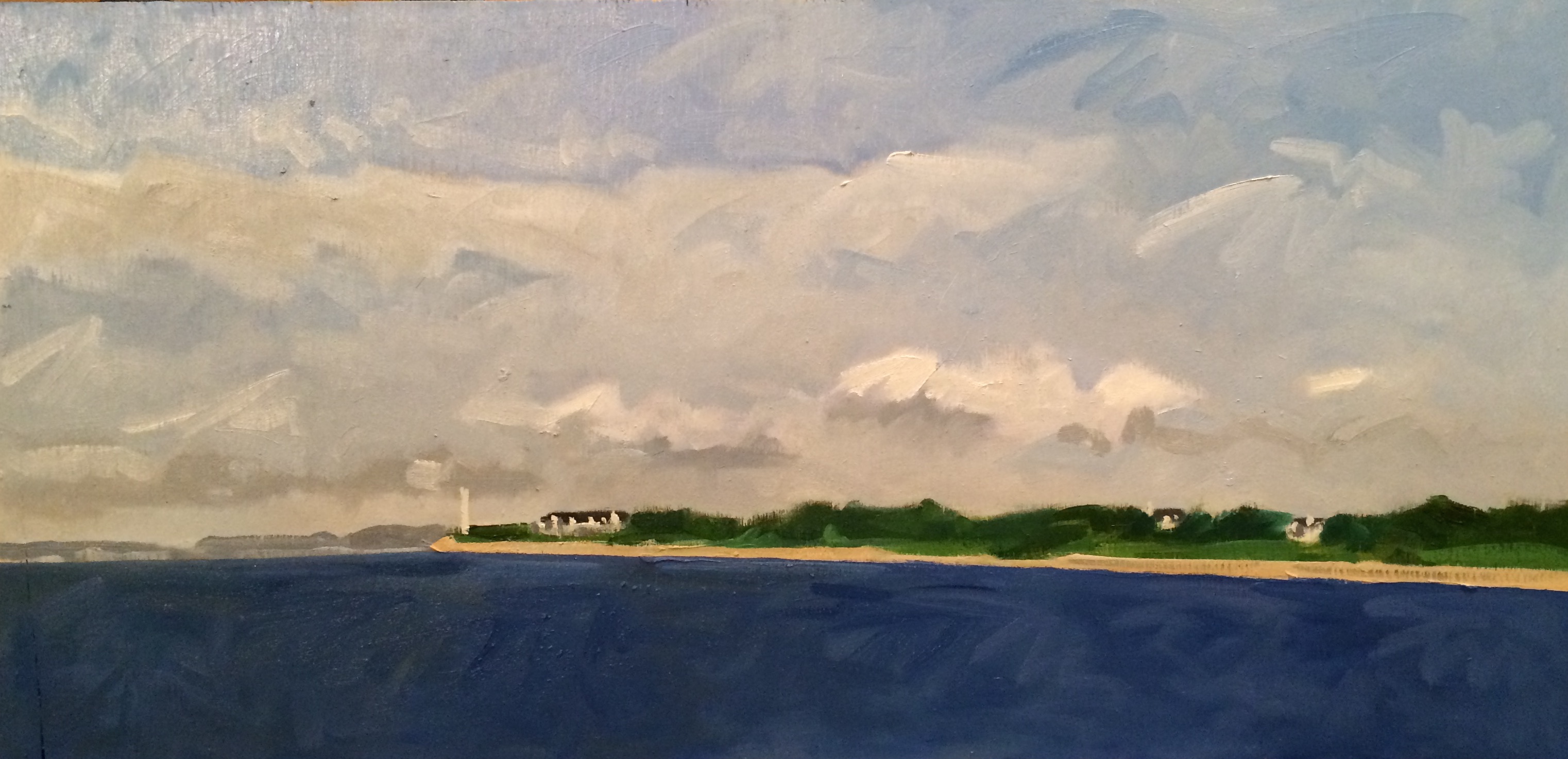 On the Ferry to Marthas Vineyard. 2017. Oil on plywood. 12 x 24".