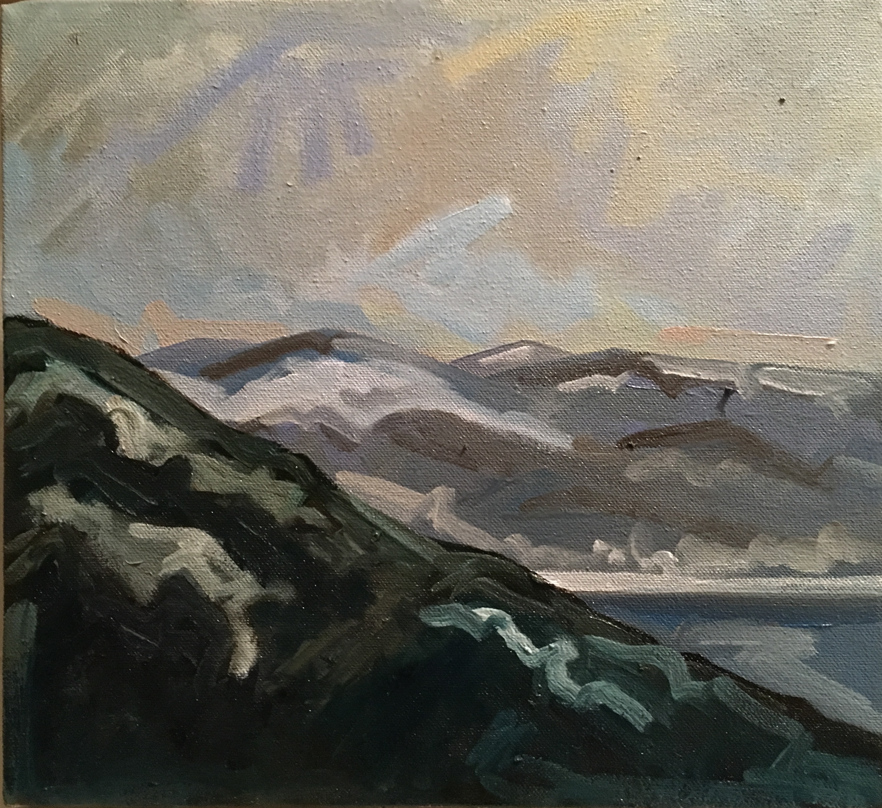 Towards Storm King from Dennings Point. Beacon. 2019. Oil on canvas. 11x14".